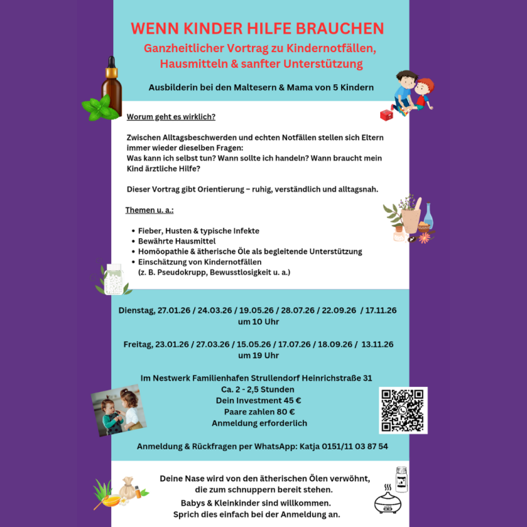 Was tun, wenn ein Kind plötzlich nicht mehr atmet oder sich verschluckt? In diesem Vortrag zeige ich Dir – als Mama, Papa, Oma oder Opa – wie du in Notfallsituationen ruhig, sicher und richtig handeln kannst.
